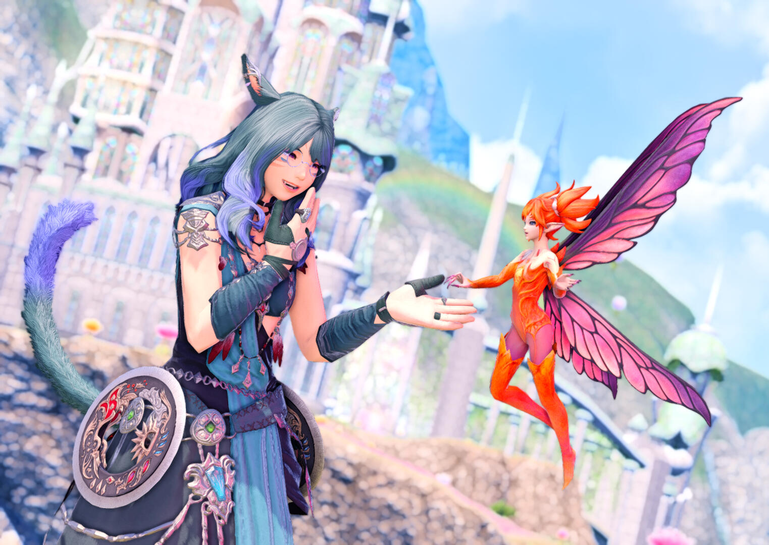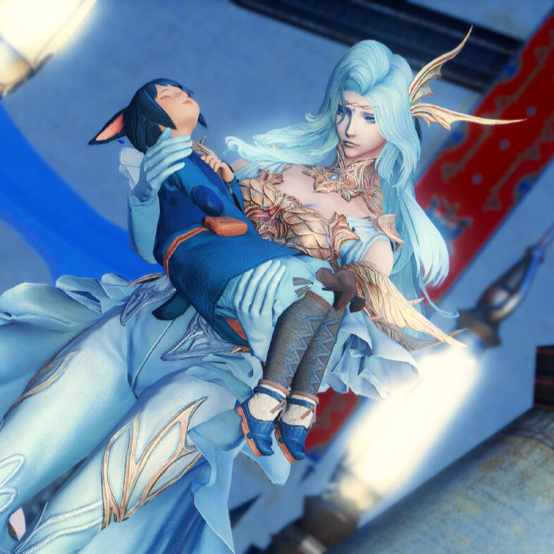 After being roped into Martyn's shenanigans one ordinary day in Limsa, Rosaline takes to training in the ways of blue magic under his tutelage as a means to ensure he doesn't end up in the gaols at the hands of the Yellowjackets. Slowly but surely disdain grows to fondness as she develops feelings for the mage. And after watching Martyn nearly kill himself in his match against Siegfried, the feelings she tried to deny become irrefutable. Little does she know that those feelings are not one-sided, as Martyn too had been quietly harboring feelings for her. Unfortunately for the two of them, they both - for their own unique reasons - had convinced themselves that the other could not or would not return those feelings.The two would pine for each other for some time as they continued their relationship as teacher and apprentice. It wouldn't be until their victory against Gogo, emotions high in the wake of their triumph, do they finally confess their feelings to one another.All the while Martyn remained blissfully unaware of Rosaline's true nature as the Warrior of Light until she saves the entire star from utter calamity. Though the revelation catches him by surprise, he works to come to terms with the truth of Rosaline’s life.